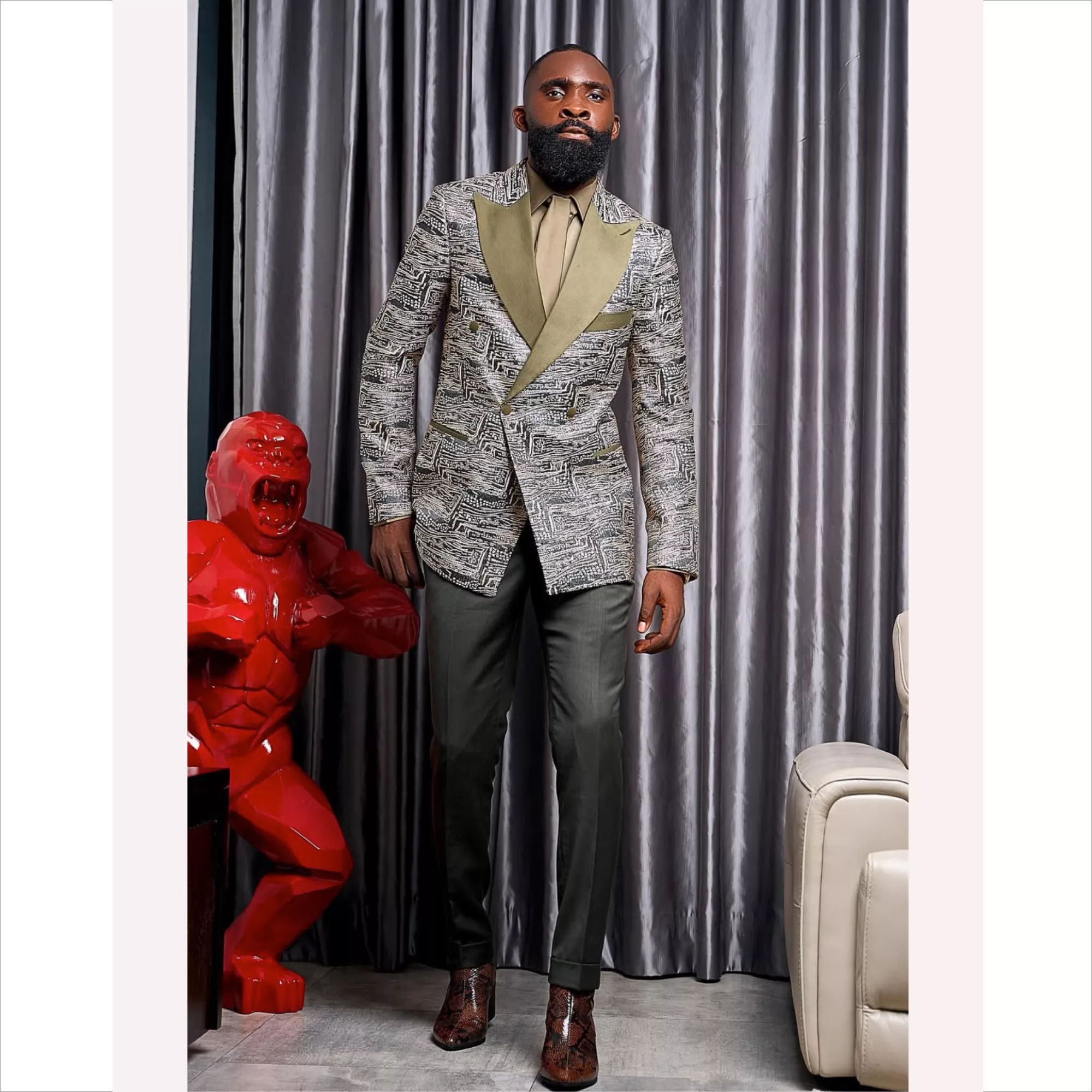 Nestled in the heart of Douala, Cameroon, our brand oEers both Bespoke and Ready-to- Wear collections that cater to those who seek high-end craftsmanship, sophisticated design, and a perfect blend of tradition and modernity.